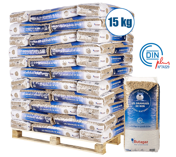 Nos granulés sont composés à 100 % de bois résineux, certifiés DIN Plus (DIN+) et conditionnés en sacs de 15 kg. Pour un fonctionnement optimal de votre poêle, un combustible de haute qualité est indispensable.