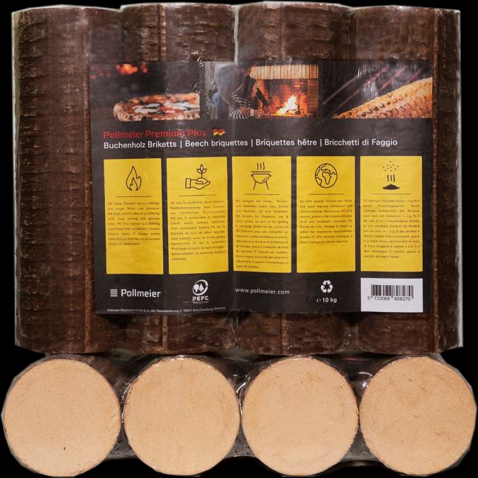 Sehr hart gepresste Buchenbriketts vom größten deutschen Buchenholz-Sägewerk. Premiumqualität aus deutscher Produktion mit PEFC-Siegel – das Zeichen für nachhaltige Forstwirtschaft. Wie alle unsere Produkte natürlich ohne Zusätze, nur aus reinen Sägespänen. Diese Buchenbriketts von „Pollmeier“ werden in der Produktion auf Länge gesägt und nicht gebrochen, daher saubere Schnittkanten. Sehr lange Brenndauer mit gleichmässiger Wärmeabgabe, wenig Asche.